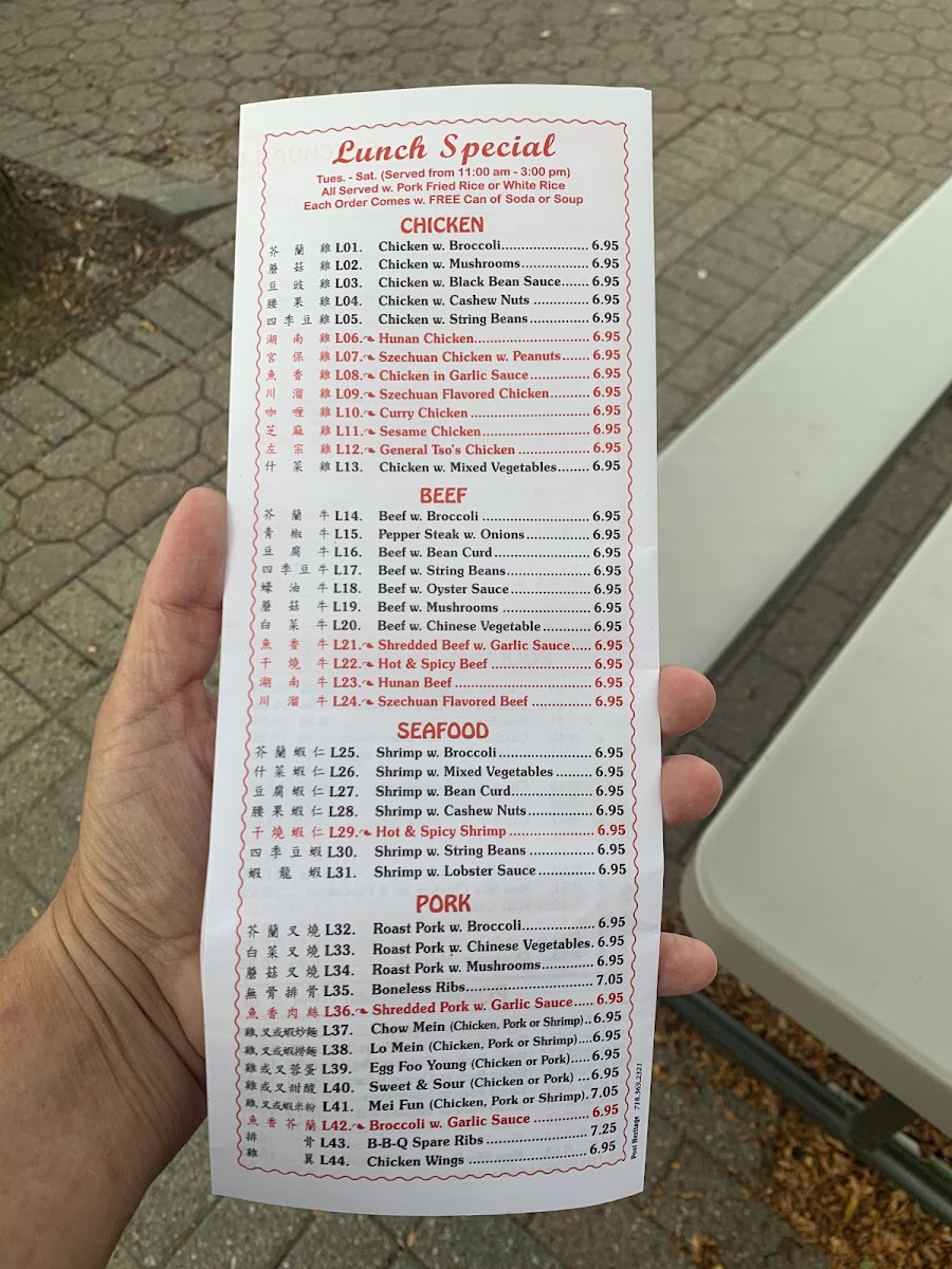 From a reviewer’s perspective, the menu at King’s Palace offers a broad and satisfying selection of classic Chinese-American dishes, even though specific prices are not listed. The meal can begin with comforting soups like Wonton Soup 云吞汤 or Egg Drop Soup 蛋花汤, followed by crowd-pleasing appetizers such as Egg Roll 春卷 and Crab Rangoon (8) 芝士云吞. The variety continues with staple rice and noodle options like Pork Fried Rice 叉烧炒饭, Chicken Lo Mein 鸡捞面, and Beef Chow Fun 牛肉河粉, alongside lighter choices like Vegetable Mei Fun 菜米粉. Entrées are equally diverse, ranging from poultry dishes like Chicken W. Broccoli 芥兰鸡 to hearty selections such as Beef W. Mushrooms 蘑菇牛 and seafood favorites like Shrimp W. Lobster Sauce 龙虾糊. Diners looking for bold flavors will appreciate Szechuan classics like General Tso's Chicken 左宗鸡 and Sesame Beef 芝麻牛, while combination plates like Chicken Chow Mein Combo 鸡炒面 provide convenient value. Overall, the menu’s extensive range ensures there is something for every taste, making it a dependable choice for both quick lunches and satisfying dinners.